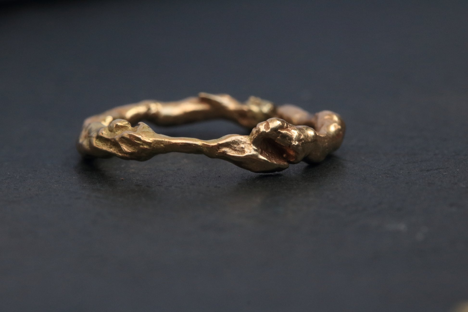 טבעת זהב 14 קראט עם סיפור בטקסטורת אדמה