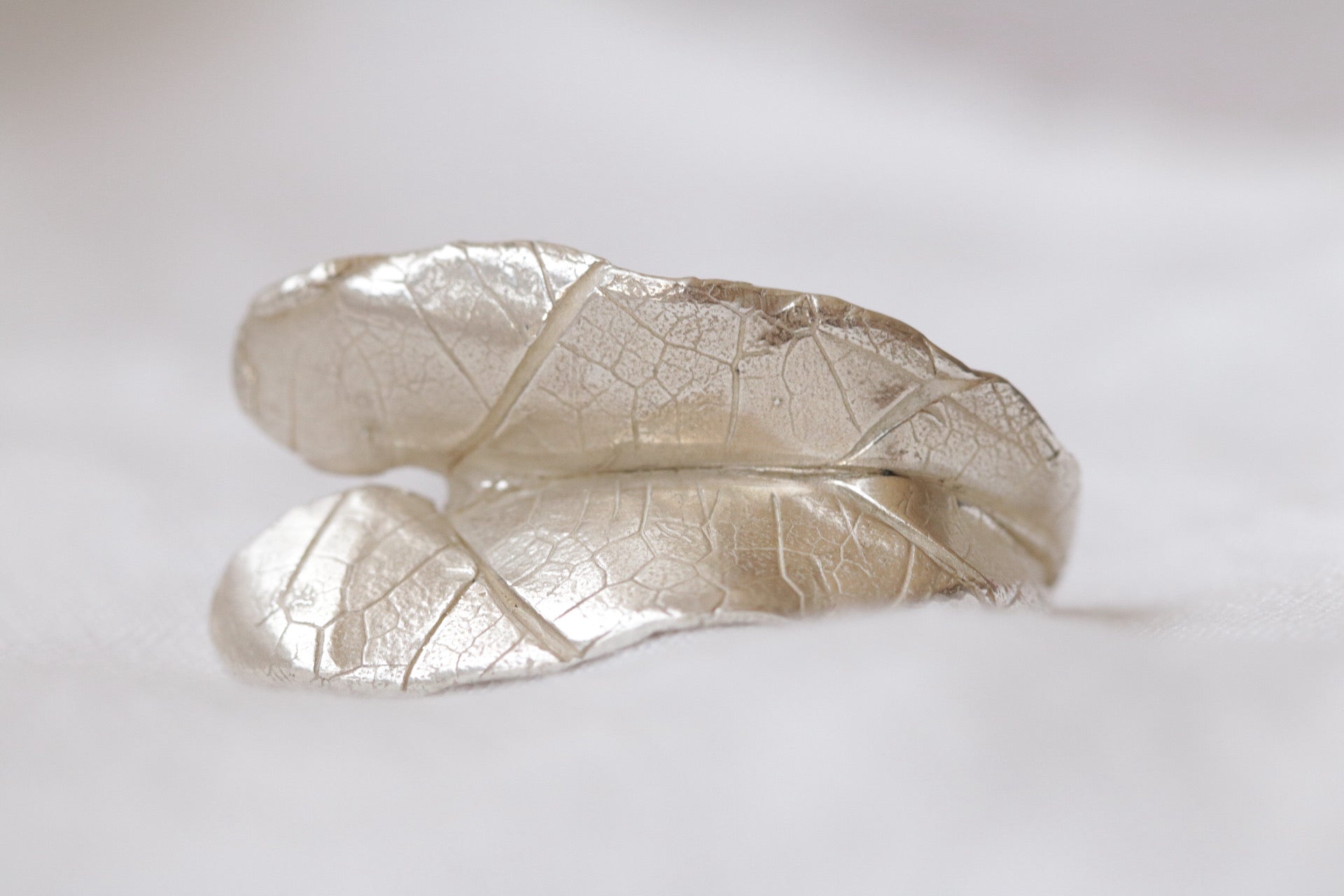 כל טבעת נוצרת בעבודת יד, בטכניקה מסורתית שמשמרת את הטקסטורה של העלה עד הפרטים הכי קטנים.